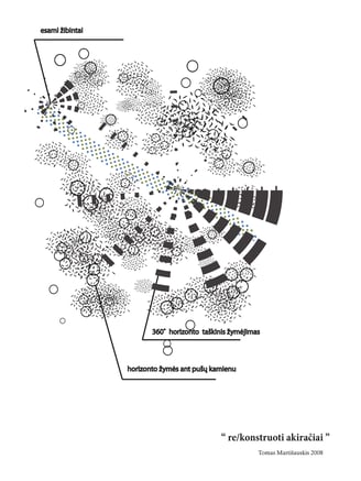 Koncepcijos aprašymas: Per anamorfines optines iliuzijas tyrinėjama teritorinė apropriacija ir kintančios ribos tarp gamtos ir sukurtos aplinkos.